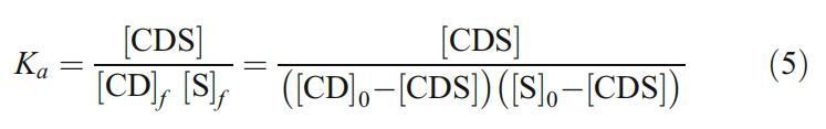 Ka通过将等式6与[CDS]与[CD]0的实验数据拟合而确定。在式6中,CD0和S0分别为总环糊精和总表面活性剂浓度。