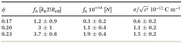 在模拟中,f0以kBT/Reff为单位,这是因为Reff是距离单位,kBT是能量单位。因此,在用物理单位表示f0时,必须考虑T和Reff的不确定性。然而,经过误差分析,我们发现Df0仅由(Df0)Df的贡献决定。