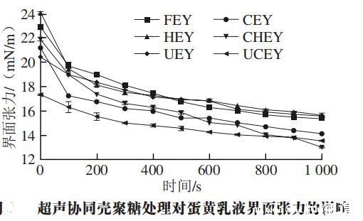 超声协同壳聚糖处理对蛋黄液界面张力的影响