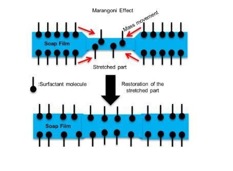 -泡沫稳定与破灭:表面活性剂在泡沫壁上的不均匀分布可引发马兰格尼流,影响泡沫稳定性。同样,气泡内部的马兰格尼效应可能影响气泡破裂过程。