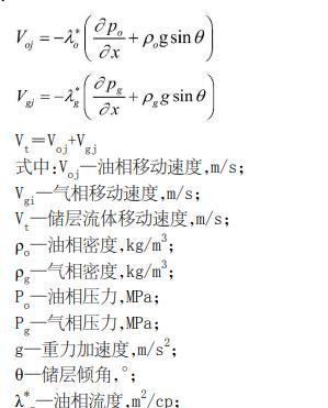 基于达西定律计算倾斜储层中油相与气相的运移速度的公式如下: