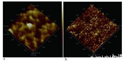 沉积在硅片上的薄膜用原子力显微镜间接接触模式进行检测,范围由大到小进行扫描,图像由NanoScope Analysis软件进行处理。