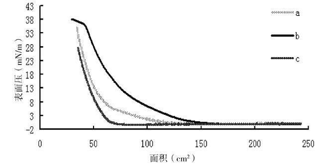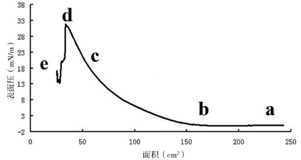 图2 DEAE-琼脂糖LB膜的表面压-面积曲线(0.5 mg/mL,300μL)