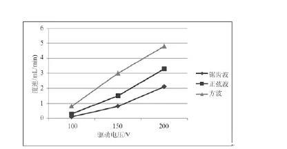 (1)探讨压电陶瓷片在不同波形驱动下,微泵流速的比较,为驱动电压波形的选择提供依据;