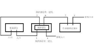 在系统装配良好的情况下,单独从4号口推药,由于保护装置的存在,保护膜将把5,6两孔堵塞,液体不会从8流出,甚至液体都不会进入泵液部分,因为该保护装置对气体同样适用;将5号孔的管子拔除,然后从4号口向里注射液体,则泵液部分出口会有液体流出,待排空从4号孔至泵液部分出口之间的气泡后,将5号口的管子装上,这时,给泵液部分加上交变电压,液体将从8号孔流出;将8号孔堵住,由于背压的存在,传感器读数将发生变化。