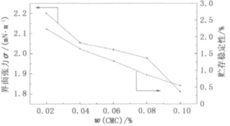 图4羧甲基纤维素钠对油水界面张力和贮存稳定性的影响