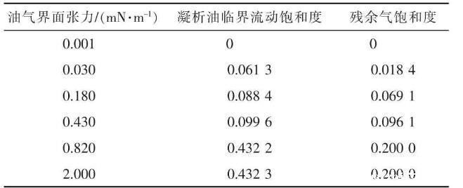 2)建立了基于界面张力影响的凝析油气临界流动饱和度模型。模型量化了界面张力对凝析油气临界流动饱和度的影响,能表征随界面张力增大凝析油气临界流动饱和度增大的特征,使得凝析气藏变界面张力的渗流机理更清晰。
