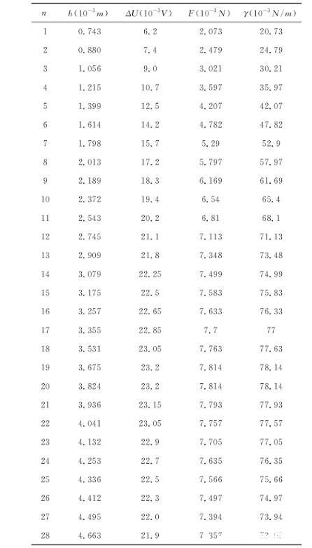 计算出F1后采用数据迭代公式(4)可计算出不同液膜拉伸形变量对应的表面张力值。