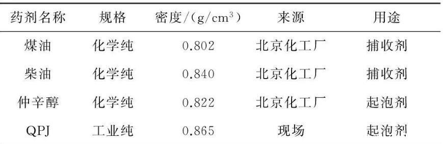 浮选药剂有煤油、柴油、仲辛醇和QPJ,其基本性质及用途见表1。