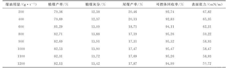 表2煤油对浮选和表面张力的影响试验结果表