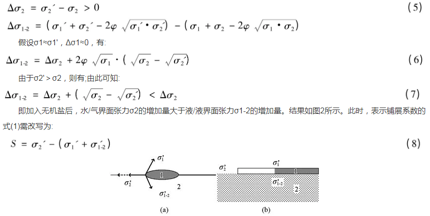 图2无机盐对各界面张力影响及液/液铺展示意图