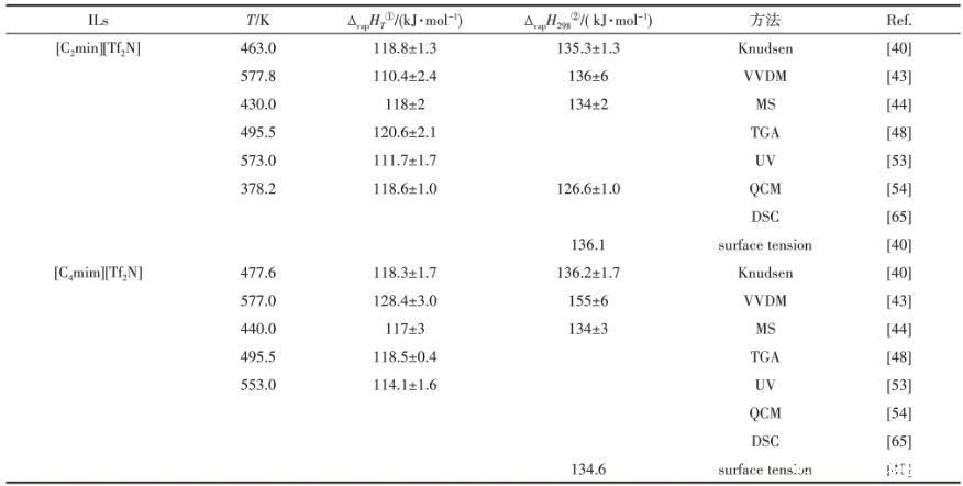 表1用不同实验方法测定的离子液体[Cnmim][Tf2N](n=2,4)的汽化焓