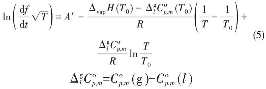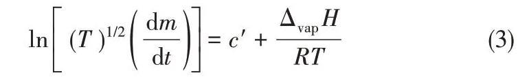 将ln[(T)1/2(dm/dt)]对1/T作图,通过直线的斜率求出ILs的汽化焓ΔvapH。