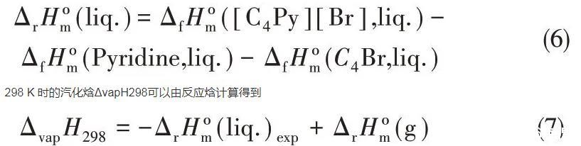 2013年,Verevkin等[65]用差示扫描量热法测定了吡啶和吡咯烷基ILs合成的反应焓和ILs的汽化焓。差示扫描量热法(DSC法)广泛用于化学反应的动力学和热力学研究,他们在之前的工作中报道了差示扫描量热法可以作为测量ILs热力学性质的合适的实验工具,能够间接得到汽化焓[66-67]。