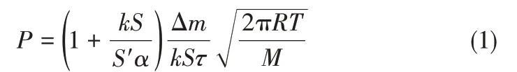 式中,Δm是经过一段时间τ后的质量损失;S是孔的面积;k是透射系数;M是蒸气的摩尔质量;S'是液体的表面积(假定等于电池的横截面积);α是汽化系数,通常情况下,液体的α=1。