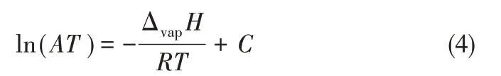 将ln(AT)对1/T作图,回归线性方程,从斜率可以得出ILs的汽化焓数据。