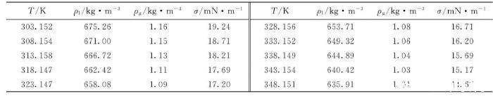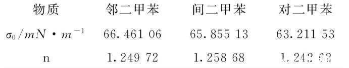 表4邻二甲苯、间二甲苯和对二甲苯表面张力拟合参数