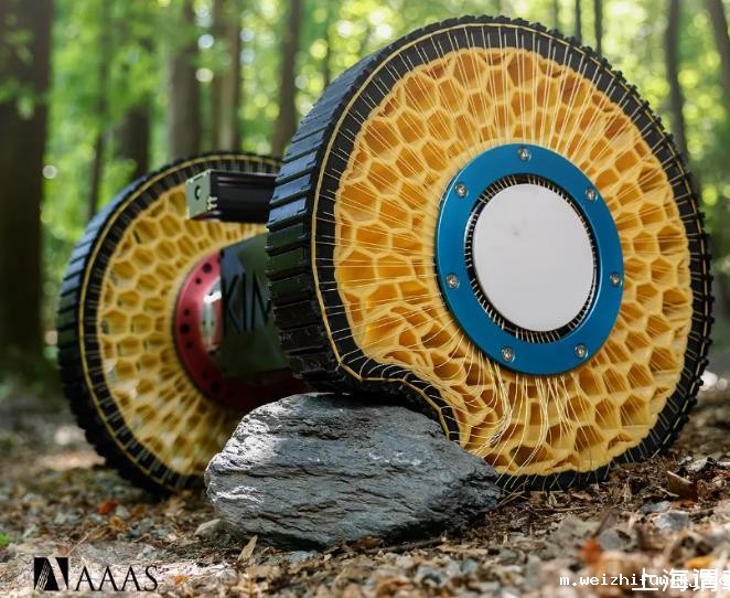 凭借其速度和低运输成本,车轮是机器人运动的有利选择。然而,车轮不能轻易地越过大障碍物,从而限制了它们在某些环境中的使用。近期Science Robotics发表的封面论文,Lee等人开发了一种刚度可调的轮子,可以实时改变,在平坦的地面上呈现出坚硬的圆形,在大障碍物上呈现出柔软的、可变形的形状。车轮外侧的智能链条结构通过辐条结构连接到中心轮毂。辐条中的张力可以调整以适应车轮的刚度,从而允许车轮在可变的地形上移动。车轮功能在四轮车辆和两轮轮椅系统中得到了展示。