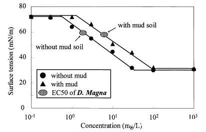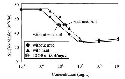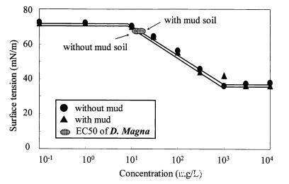 图 12 泥土存在对地表的影响 AE和有毒表面张力的张力曲线 Daphnia Magna 的价值。