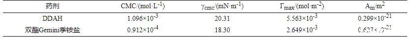 表1 DDAH与双酯Gemini季铵盐表面性能计算结果