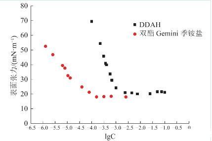 图1 DDAH与双酯Gemini季铵盐的γ-lgC