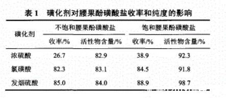 表1磺化剂对腰果酚磺酸盐收率和纯度的影响