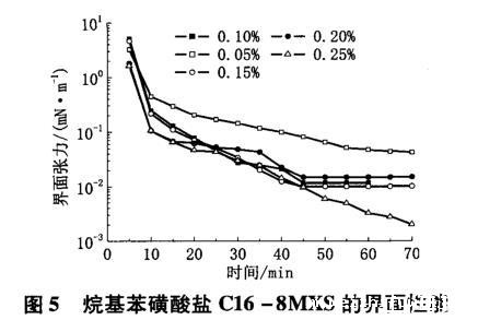 图5烷基苯磺酸盐C16-8MXS的界面性能