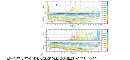 图10 SAES与AES的背散射光光强值和透射光光强值图谱(a)SAES;(b)AES。