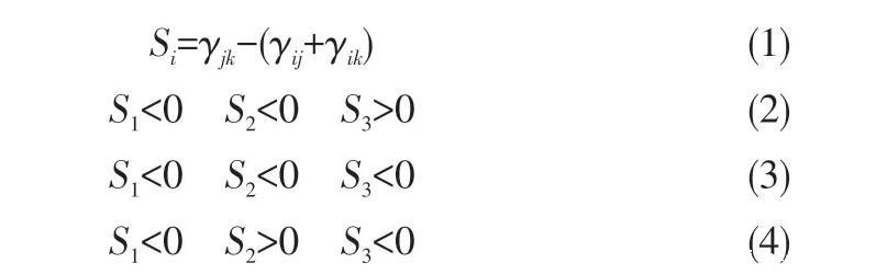 气液液微分散技术在萃取分离领域的应用是本文的重点关注对象,通常气相作为内相,萃取剂为中间相,低浓度稀土离子的水溶液为连续相。对于不同体系,最终所形成的气液液三相流流型由三相界面张力关系决定。根据三相界面张力Torza等引入了铺展系数[式(1)],若铺展系数满足式(2),该体系可形成水包油包气中空液滴结构;若铺展系数满足式(3),该体系可形成Janus结构;若铺展系数满足式(4),油滴和气泡将互相分离。对于常见的氮气/P507萃取剂/稀土离子盐酸水溶液体系,该体系界面张力关系满足式(2),可形成稳定的水包油包气结构。连续相的稀土离子与中间相的萃取剂在界面接触发生反应,实现了稀土离子从水相到有机相的传质。在该过程中气体的引入有两个独特优势:一是中空微液滴的形成增大了传质比表面积,加快反应速率;二是与油滴相比中空微液滴的密度大大减小,因此可加速分相。与液液萃取相比,气液液微分散萃取技术具备传质快及易分相的特点,有望解决大相比萃取过程中萃取效率低、易乳化等问题。
