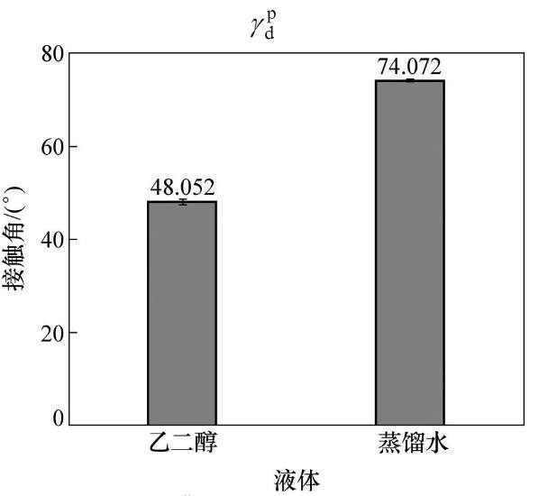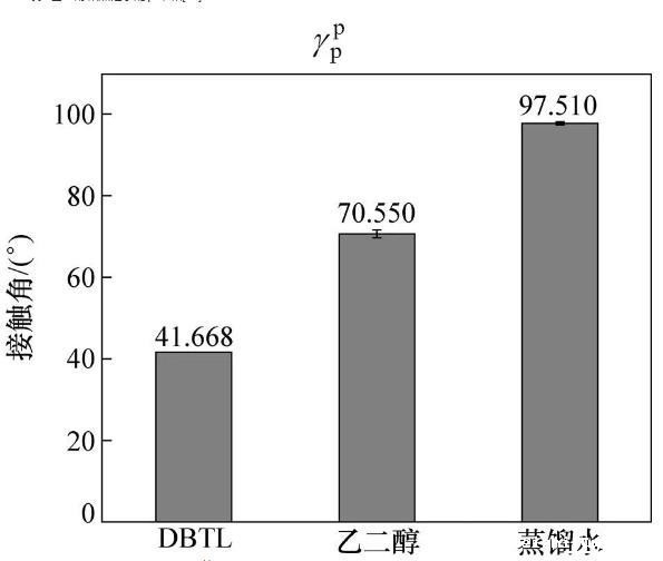 调和平均法计算CBT500与DBTL界面张力(12),CBT500、DBTL表面张力()、极性分量(p)、色散分量(d)研究是基础。CBT500色散分量、极性分量通过引入2种测试液体求解二元二次方程组,DBTL色散分量、极性分量通过研究DBTL在PP薄板上静态接触角并结合表面张力是材料极性分量、色散分量之和进行二元二次方程组求解。