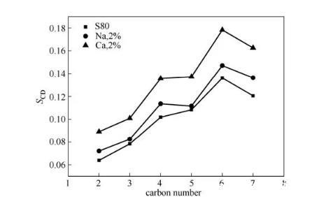 图9在不同离子溶液中疏水链碳原子的序参数