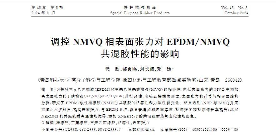 调控NMVQ相表面张力对EPDM/NMVQ共混胶性能的影响