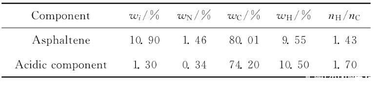 胜利原油中沥青质及酸性组分的含量及其元素分析结果列于表1。