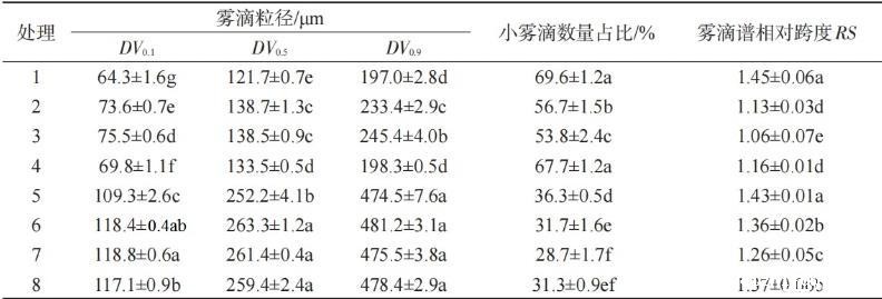 表4喷雾助剂及喷头类型对药液雾滴粒径及分布的影响