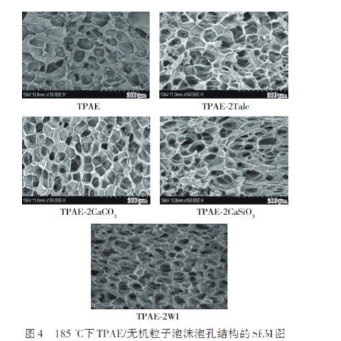 图4 185℃下TPAE/无机粒子泡沫泡孔结构的SEM图