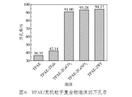 图6 TPAE/无机粒子复合物泡沫的开孔率