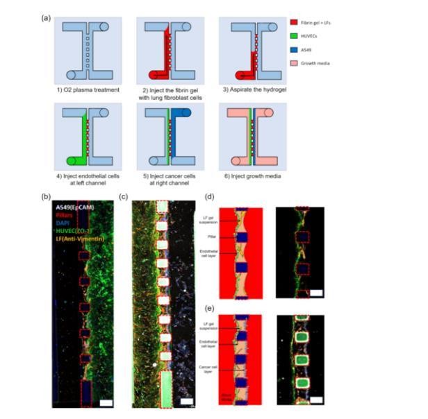 在这项研究中展示了3D打印和毛细钉固着作为制造高通量微流体设备的有效工具的潜力。结果表明,工程化一个薄的水凝胶层以模拟气-液界面的大小是可行的,这个大小接近100-150微米,适合细胞培养,并具有多种细胞图案配置,便于共聚焦成像。未来的工作可以包括开发一个完整的双细胞层模型,其中包括癌细胞,或使用空气泵模拟设备内的呼吸。这种微流体平台提供了一系列广泛的未来应用,例如粉末吸入实验或药物筛选。