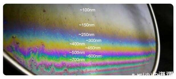 泡泡膜颜色与厚度的关系|来源:soapbubble.dk