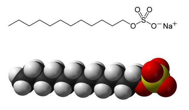 十二烷基硫酸钠(看起来像毛毛虫),表面活性剂的一种,被广泛用于洗衣粉中|来源:Wikipedia