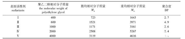 表1 5种表面活性剂的相对分子质量及聚合度(DP)