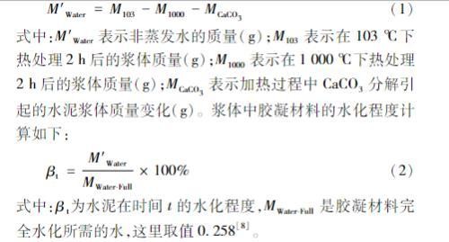 采用TAMAir八通道微量热仪测试水泥净浆96h内的水化热。用非蒸发水烧失量测试值来估算水泥的水化程度。