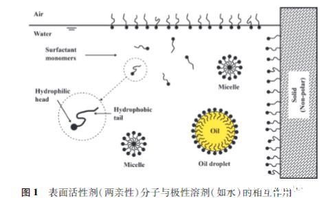 图1表面活性剂(两亲性)分子与极性溶剂(如水)的相互作用