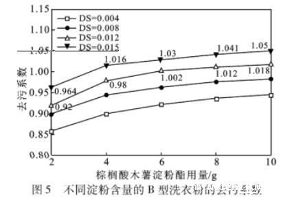 图5不同淀粉含量的B型洗衣粉的去污系数
