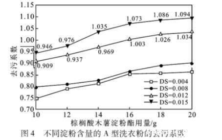 图4不同淀粉含量的A型洗衣粉的去污系数