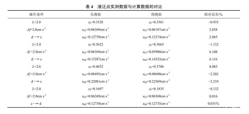 利用式(3)~式(5)计算得到的液泛速率及液泛滞存率与实测值列于表4。