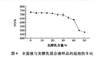 图4全蛋液与发酵乳混合液样品的起泡性变化