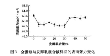 2.3全蛋液与发酵乳混合液的表面张力变化