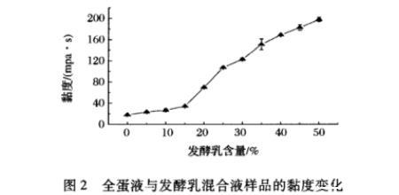 图2全蛋液与发酵乳混合液样品的黏度变化