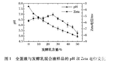 图1全蛋液与发酵乳混合液样品的pH和Zeta电位变化