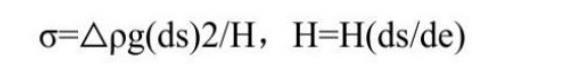 其中,de为液滴处于最大时的直径;ds为处于de上方的直径;密度取水的密度;g为重力加速度;